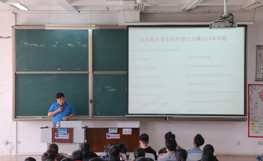 为开拓同学们的创新思维,进一步培养同学们的实践能力,5月12日,我院于E201教室召开第16届山东省大学生软件设计大赛的巡回报告会,我院诚邀到济南计算机学会办公室副主任尚玉新作宣讲报告,团委书记毕文波主持本次报告会,我院学生踊跃参加。